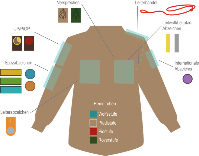 Auf deinem Pfadihemd kannst du viel Gelerntes und Erlebtes verewigen. Einerseits gibt es die Abzeichen die du bekommst, wenn du dich auf ein bestimmtes Pfadithema spezialisierst, in ein internationales Pfadilager gehst, das Pfadiversprechen machst und bei vielen weiteren Gelegenheiten. Andererseits bekommst du auch in jedem Pfadilager einen Lagerdruck auf die Rückseite des Pfadihemdes. Die Lagerdrucke werden von den Leitern für jedes Lager von Hand im Lager gedruckt. Tipp: Nach dem Lager solltest du vor dem Waschen den Lagerdruck einbügeln, damit er nicht ausgewaschen wird.